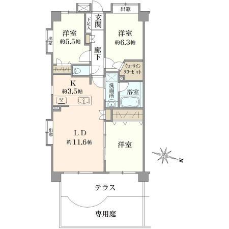 | その他面積 | 専用庭:11.21㎡、テラス:10.83㎡ | 土地権利 | 所有権 | ||