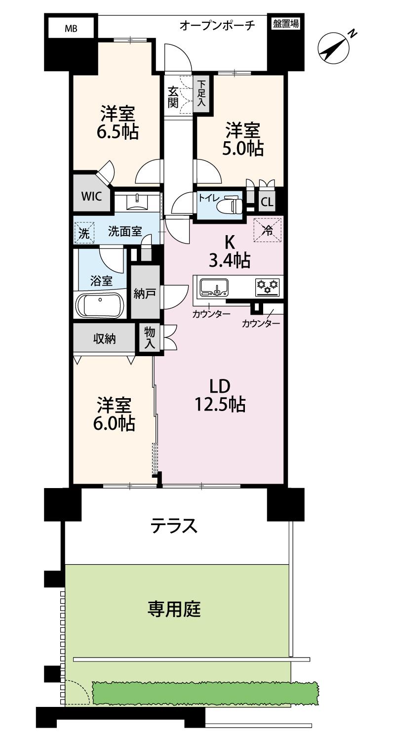 | その他面積 | 専用庭:16.16㎡(使用料650円/月)、テラス:12.4㎡(使用料無) | 土地権利 | 所有権 | ||