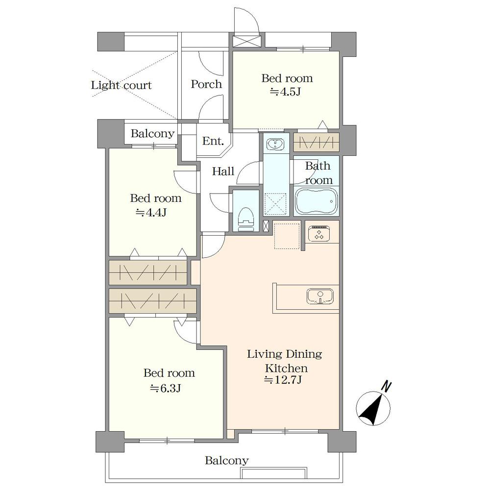 販売戸数/総戸数 | 1戸/60戸 | 主要採光面 | 南東 | ||