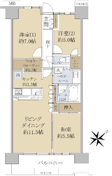 | 販売戸数/総戸数 | 1戸/152戸 | 主要採光面 | 南東 | ||