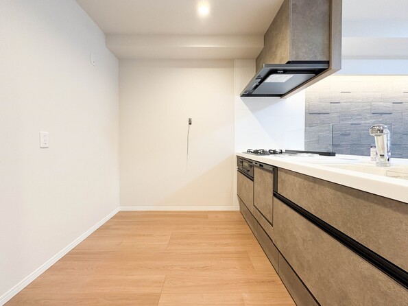 【キッチン】ナチュラルな自然光の中での調理。会話が弾む対面型キッチン。お洒落な食器類を余裕で収納できるスペース。動きやすい女性目線のキッチン動線。これからはお料理をつくる時間が劇的に変わります。