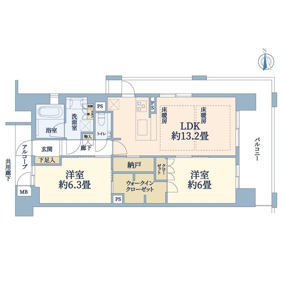 | 販売戸数/総戸数 | 1戸/56戸 | 主要採光面 | 東 | ||