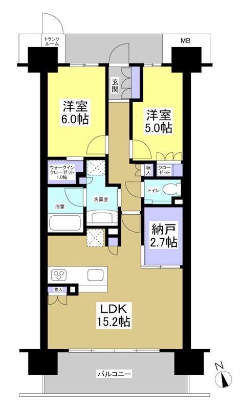 | 販売戸数/総戸数 | 1戸/62戸 | 主要採光面 | 南 | ||