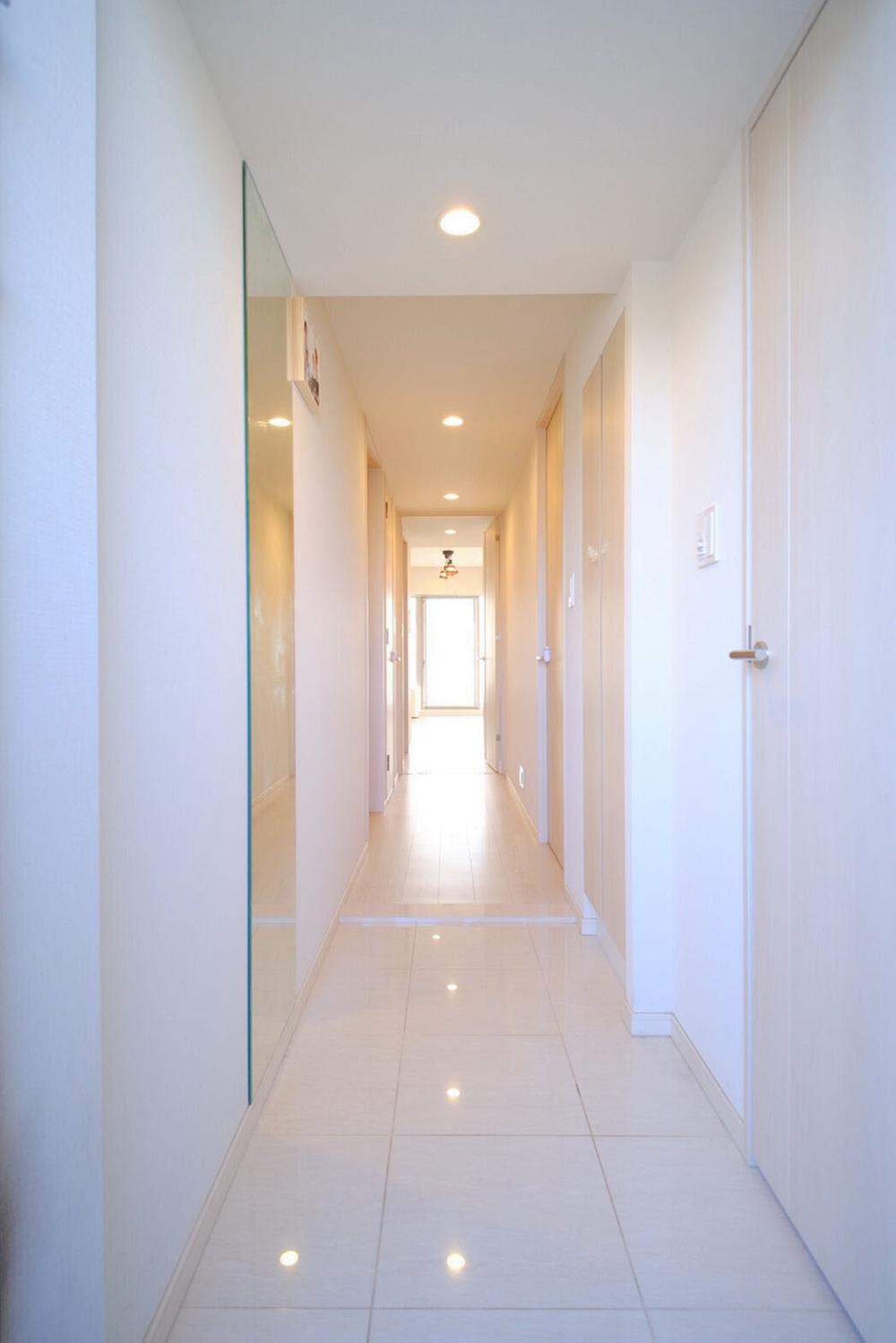 光が駆け抜けるホワイトモダン!白を基調とした室内は、光を反射し圧倒的な明るさを実現。シーリングファン付きの照明が洗練された印象を与えます。玄関からリビングまで、美しく清潔感溢れる動線が魅力です。
