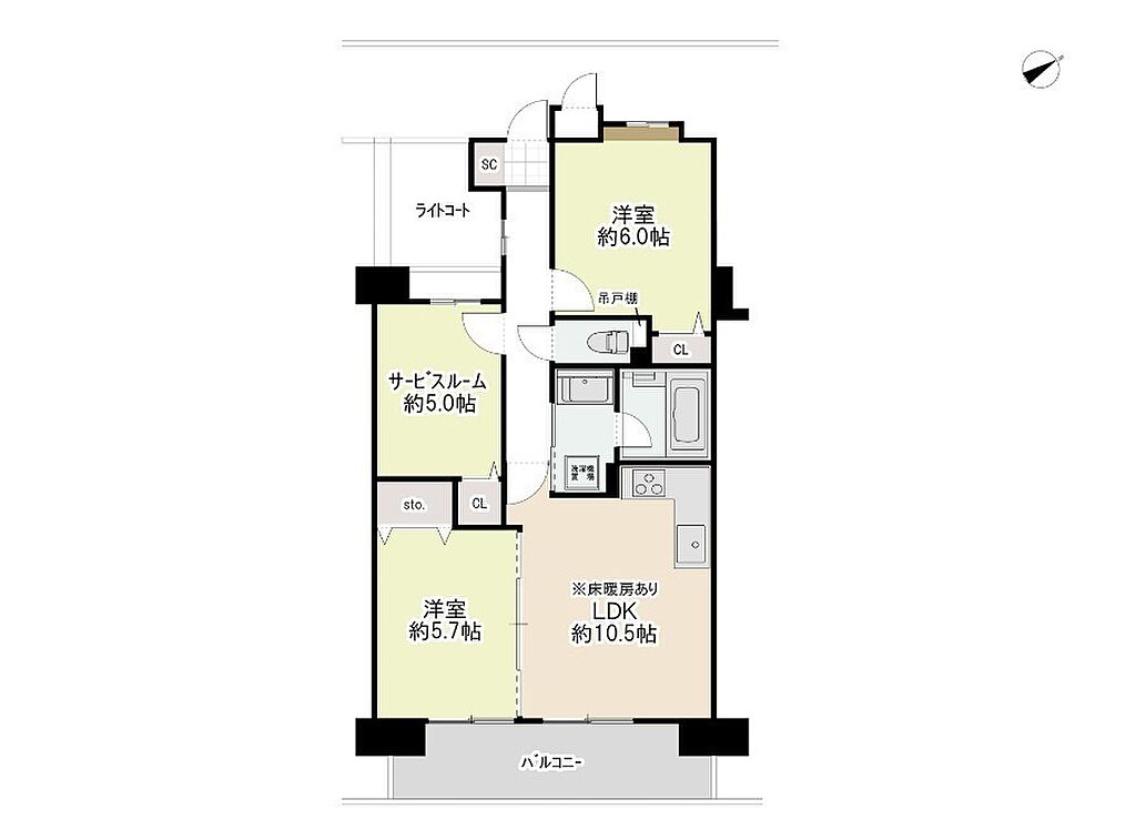 設備・サービス | 床暖房、バルコニー、フローリング、下水、都市ガス、公営水道、室内洗濯機置場、浴室乾燥機、温水洗浄便座、追焚機能、シャワー付洗面化粧台、エレベーター | ||||
