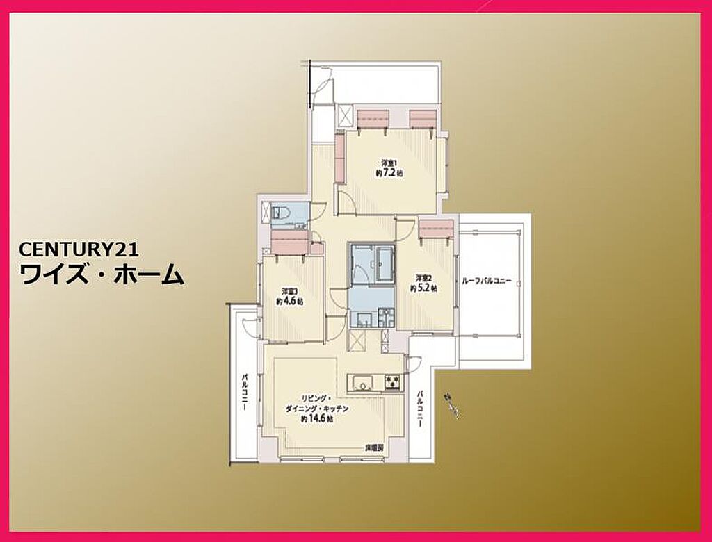 | 建物構造 | RC(鉄筋コンクリート) | 間取り詳細(帖) | リビングダイニングキッチン 14.6帖洋室 7.2帖洋室 5.2帖洋室 4.6帖 | ||
