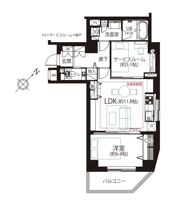 | 販売戸数/総戸数 | 1戸/51戸 | 主要採光面 | 南西 | ||