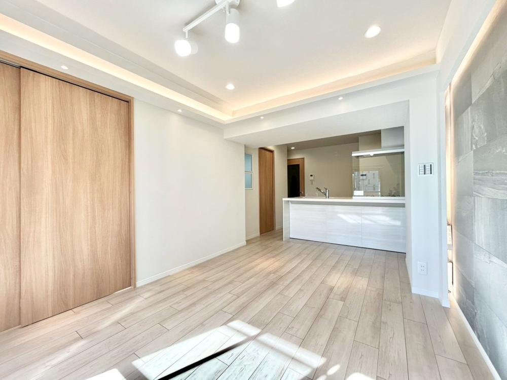 明るく開放的な空間が広がる、キッチン・ダイニング・リビング。室内には豊かな陽光が注ぎ込み、爽やかな住空間を演出。ホームパーティーでもゲストと一緒に料理を楽しみながら楽しい時間を過ごせそう。