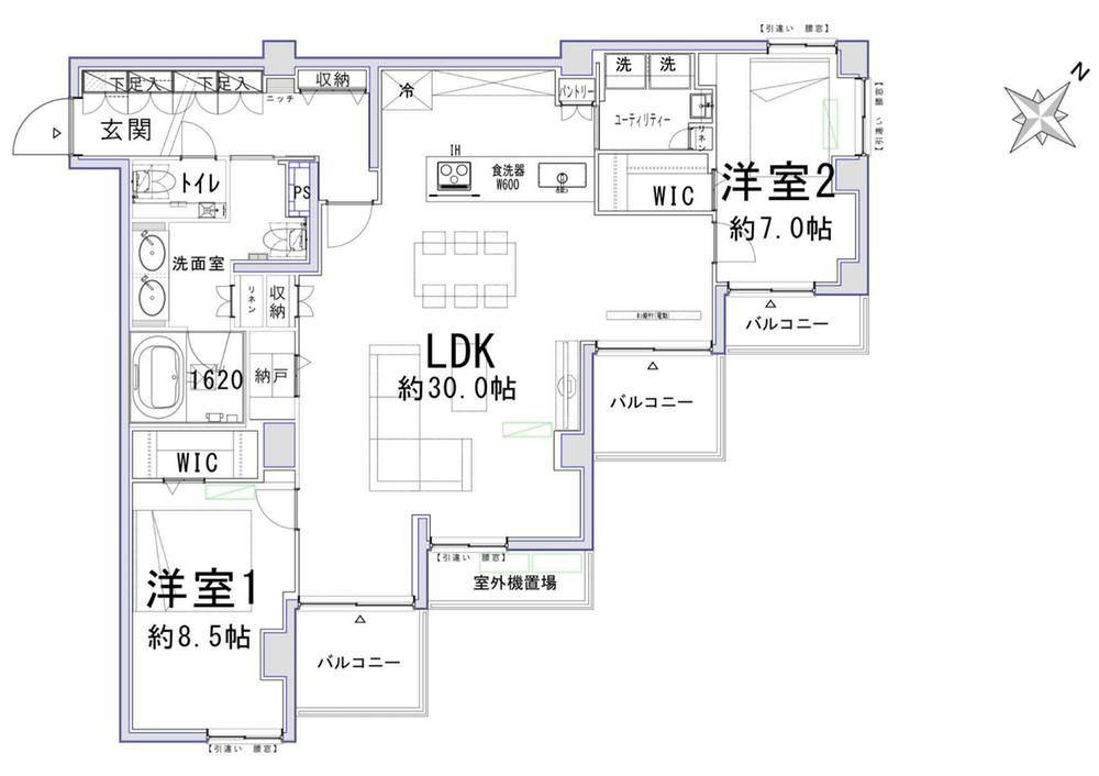 イギリス大使館や皇居の緑を望める部屋位置。専有面積100㎡超の南東角住戸。