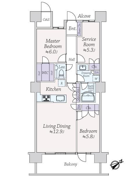 販売戸数/総戸数 | 1戸/207戸 | 主要採光面 | 南東 | ||