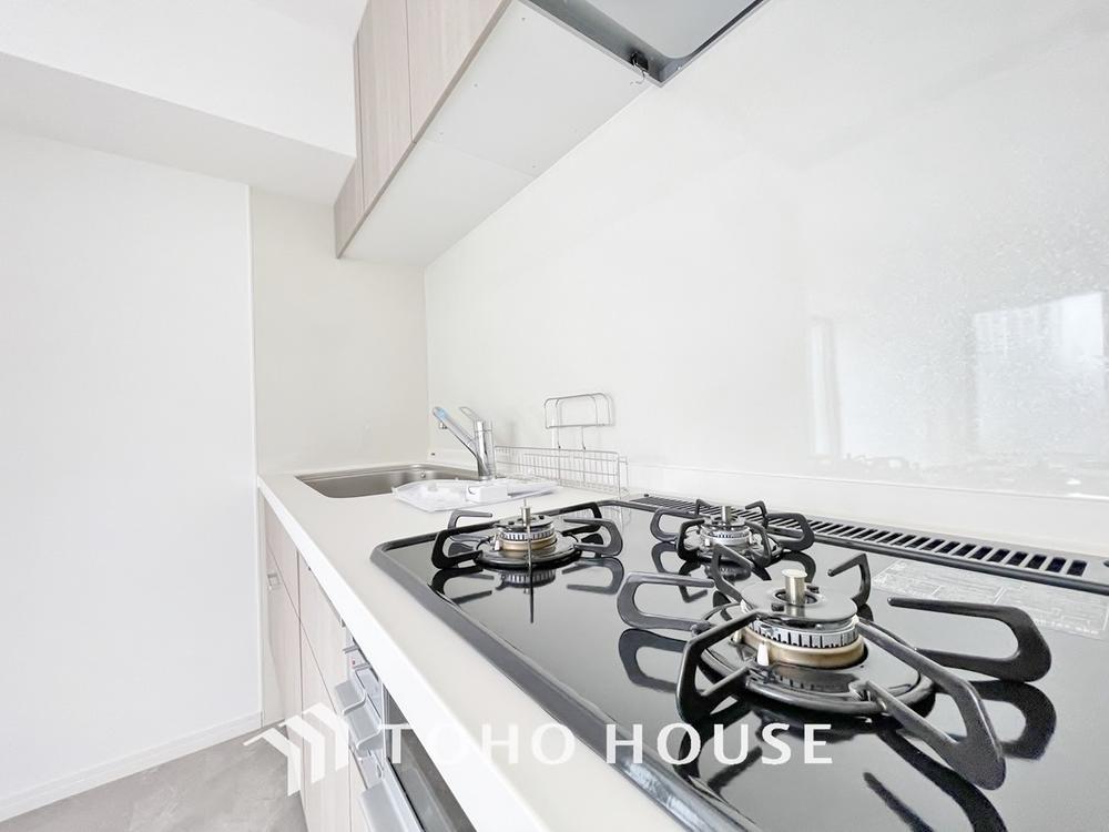 「家事時短の叶うキッチン◎」効率よくお料理ができる3口コンロ・食洗機・出し入れしやすいスライド収納を完備したシステムキッチン。確かな機能性を実感頂けます。