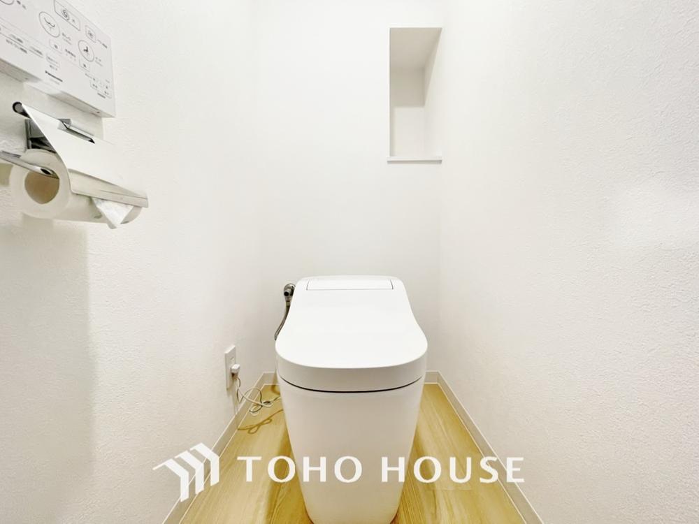 「リフォーム済・トイレ」トイレは快適な温水洗浄便座付です。清潔感のあるホワイトで統一しました。いつも清潔な空間であって頂けるよう配慮された造りです。