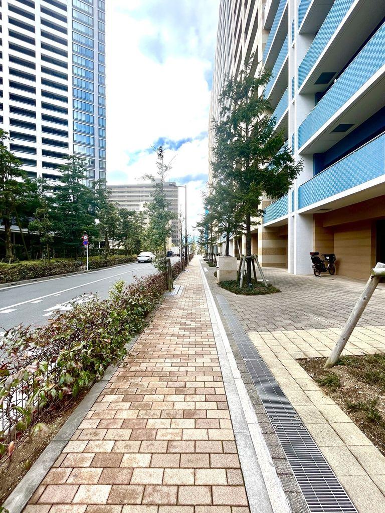 運河が近いので、散歩がてら気晴らしができるエリア。緑については、敷地内の公園に植物が多く植栽されているので、無機質なエリアの割には緑は多い方。春先になると小学校脇の歩道橋から桜並木が見られる。