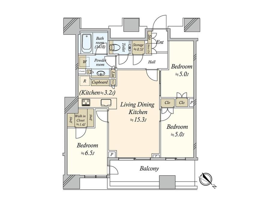 | 販売戸数/総戸数 | 1戸/1665戸 | 主要採光面 | 北東 | ||