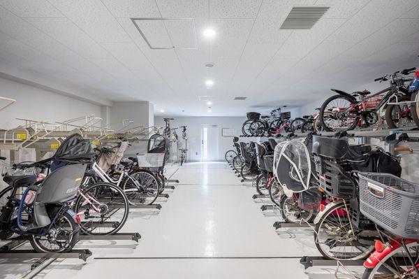 【駐輪場】駐輪場は2段式です。屋根があるので、雨から大切な自転車を守ってくれます。使用方法はお気軽にお問い合わせください。