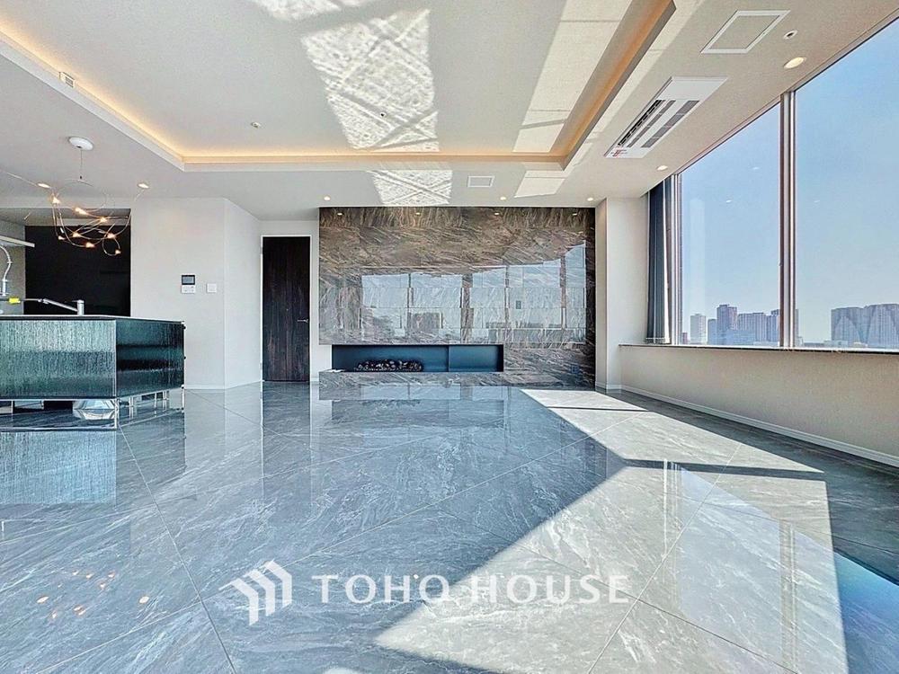 「24階南西角部屋。陽当たり・眺望良好です。」穏やかな光が明るくリビングルームを包みます。心地よい空間が、ご家族のかけがえのない時間に優しく寄り添います。