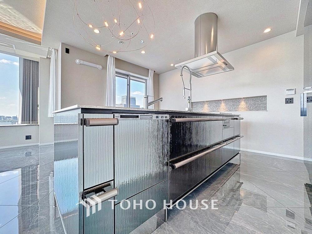 「アイランドキッチン」大型の冷蔵庫やレンジボードもしっかり置ける広々としたキッチンスペースが大事。ゆとりある空間で作業ができるとお料理の腕も日に日に上がりそうな気がしてきます。
