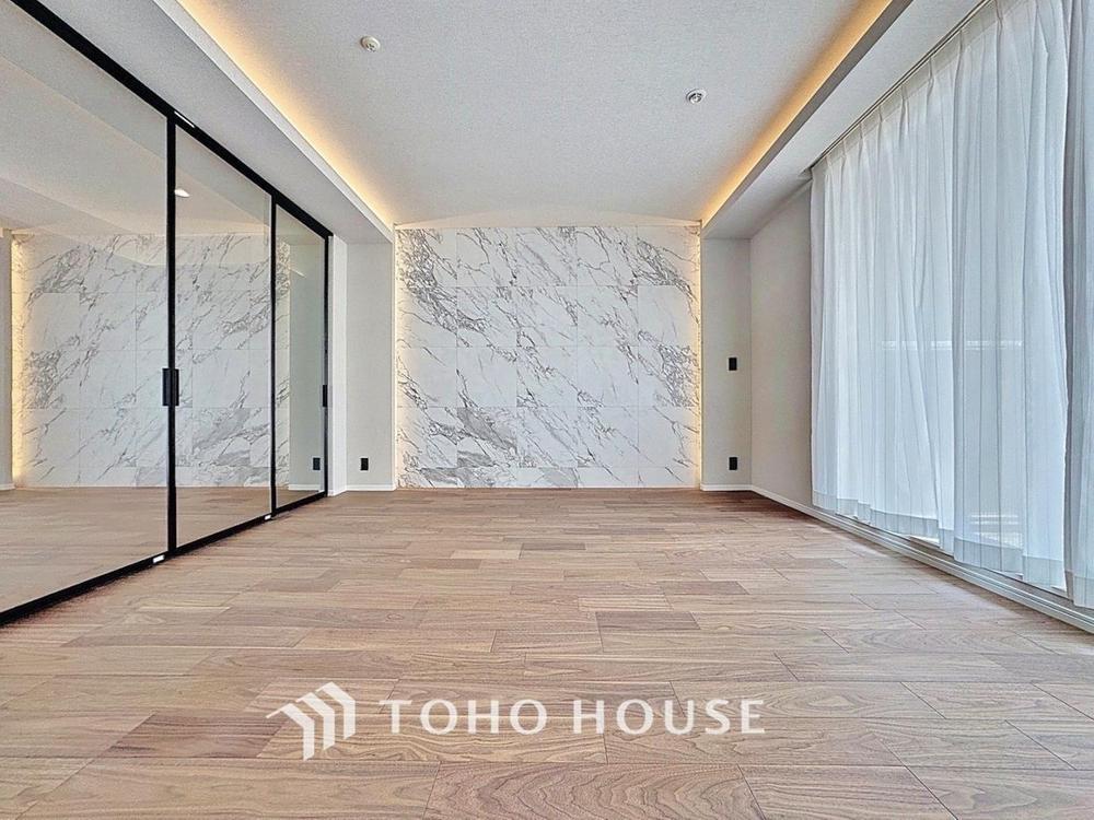 「憩いの場31帖の広々リビング。」くつろぎを愉しむリビングルームは憩いの場となります。リビングとダイニングの空間機能を活かし、巧みに使い分ける発想が、ライフスタイルに新しいゆとりをもたらします。