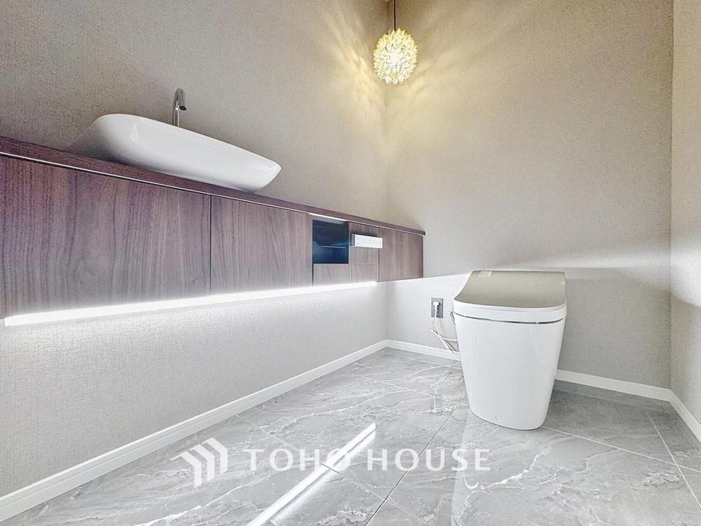 「温水洗浄便座付きトイレ」トイレは快適な温水洗浄便座付です。清潔感のあるホワイトで統一しました。いつも清潔な空間であって頂けるよう配慮された造りです。