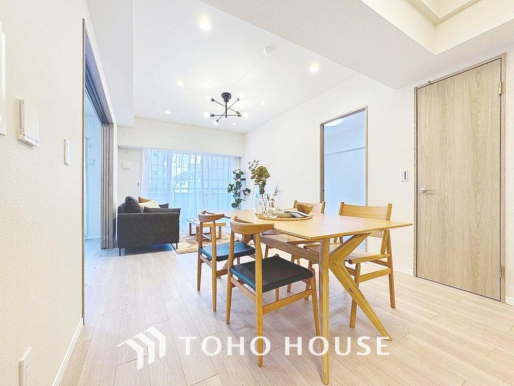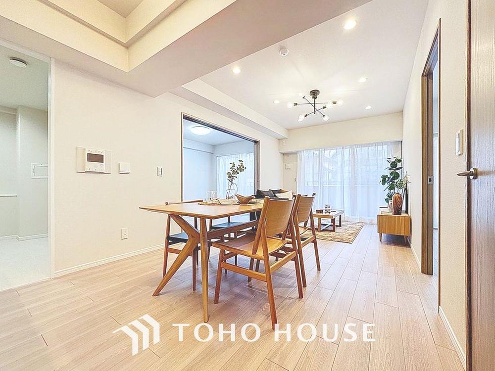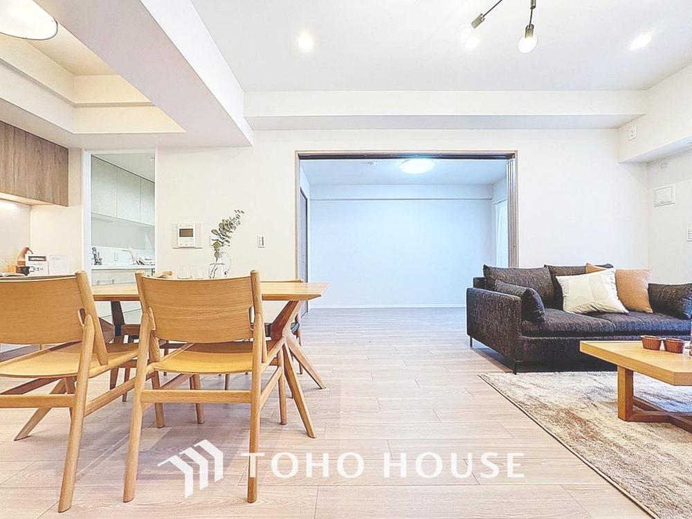 「約15帖のLDK・2025年12月リノベーション完成。」落ち着いたカラーコーディネートの室内。インテリアやファブリックで、オーナー様好みのテイストデザインを取り入れて頂けます。