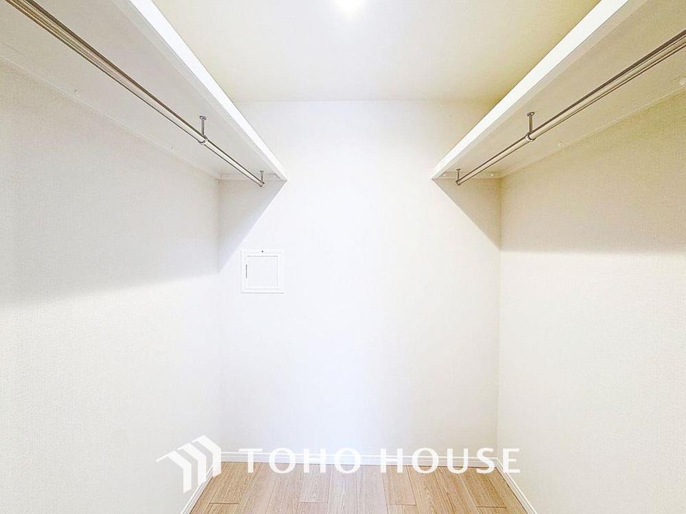 「大型ウォークインクローゼット。」季節物の衣類もスッキリ収納できるウォークインクロゼットのある住まいで収納上手な生活を。