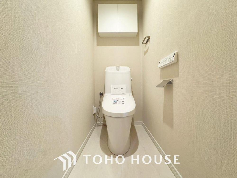 「温水洗浄便座付きトイレ」トイレは快適な温水洗浄便座付です。清潔感のあるホワイトで統一しました。いつも清潔な空間であって頂けるよう配慮された造りです。
