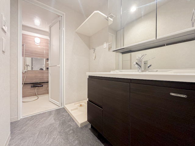 使い勝手が良い洗面化粧台は、収納力も豊富で清潔感が保たれた空間。シンプルでモダンなデザインが、朝の支度を快適にしてくれます。毎日の生活がよりスムーズに整います。