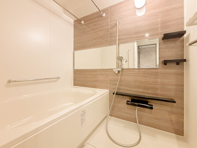 ゆったりとした広さのバスルームで、1日の疲れを癒す贅沢な時間が過ごせます。清潔感とモダンなデザインが、快適な入浴タイムを提供し、リラックスできる空間で一日の締めくくりの時間をお過ごしいただけます。