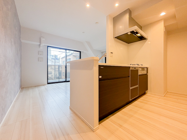 採光と通風を享受できる角住戸 家族との会話が広がる対面式キッチン 床暖房付(LD部分) リビング収納付で住空間もスッキリ快適 室内が見えにくいL型設計の玄関 リフォームにて気持ち良くお使いいただけます