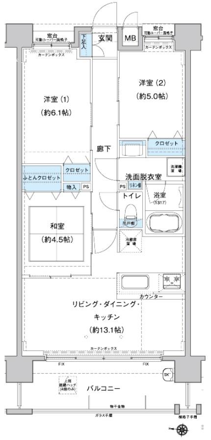 | 販売戸数/総戸数 | 1戸/45戸 | 主要採光面 | 西 | ||