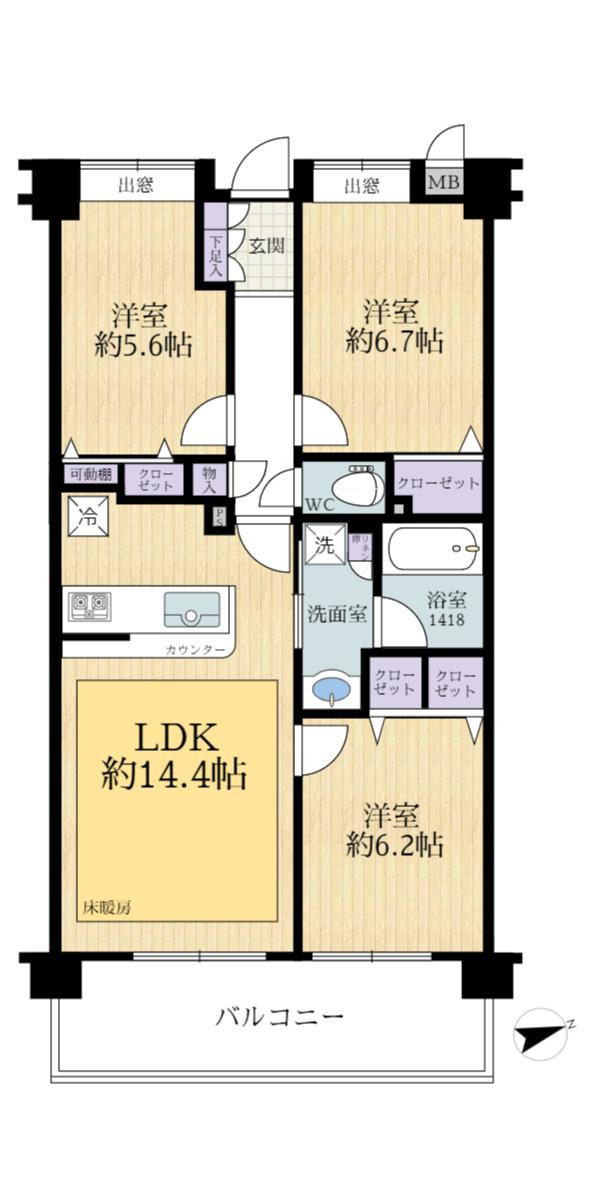 販売戸数/総戸数 | 1戸/38戸 | 主要採光面 | 東 | ||