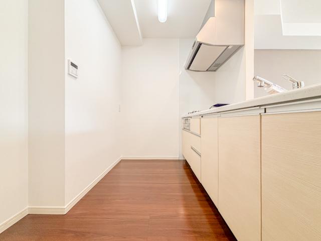 広々としたキッチンは、家族みんなで料理を楽しむのにぴったり。収納力が充実しており、調理器具や食材もすっきり片付けられます。さらに、お手入れがしやすい設計で、毎日の料理が快適に進みます。