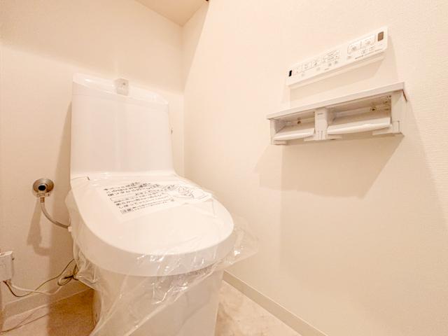 清潔感のあるトイレは、シンプルでモダンなデザインが魅力です。広めのスペースでゆったりと使えるため、毎日の生活がより快適に。綺麗だからこその心地よさを感じられる空間です。