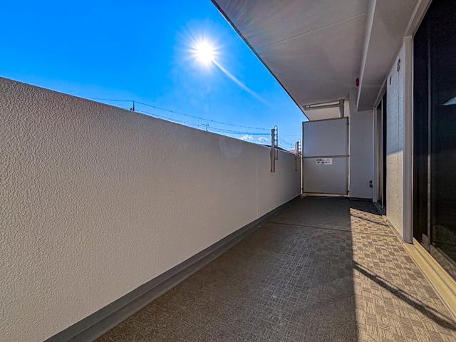 バルコニーは広さが魅力で、朝のコーヒータイムや洗濯物干しにも便利なスペースです。日差しがたっぷりと差し込み、リラックスした時間を楽しめる場として多目的に活用できます。