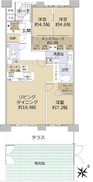 月々のローン返済額を試算南東向きの専用庭付き住戸 LDK約20.5帖 収納豊富な間取りです