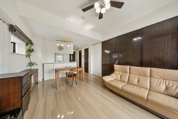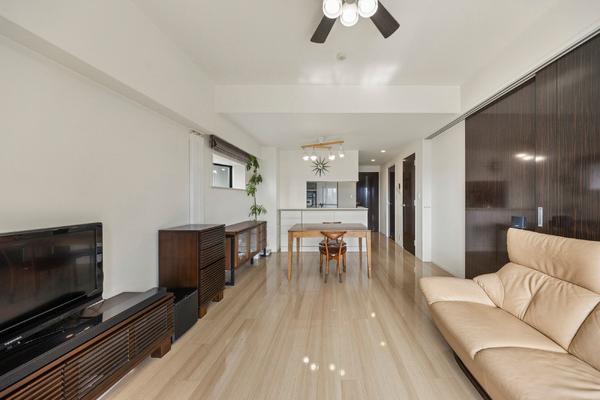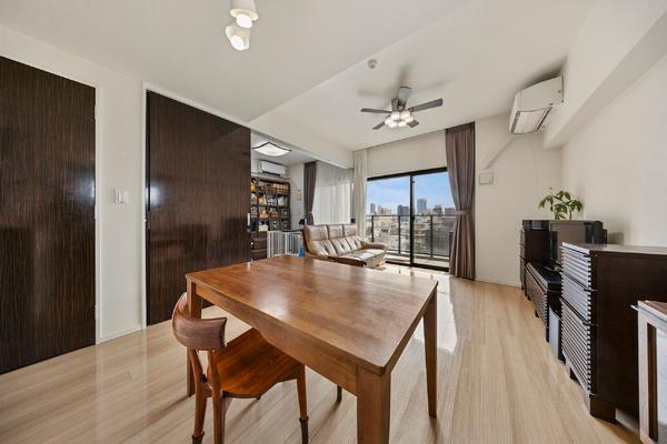 ※販売対象に家具・調度品は含まれません。LDは約12.1帖、隣接の洋室約5.5帖と繋げると、合計約17.6帖の広々空間に。(2025年10月撮影)