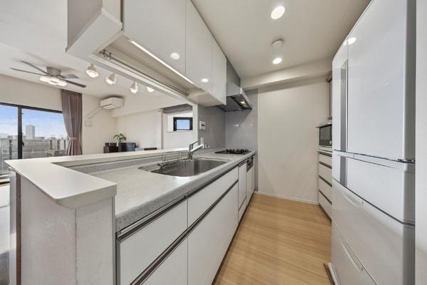 ※販売対象に家具・調度品は含まれません。LD全体が見渡せる対面式キッチン。お料理中もご家族との会話が楽しめます。(2025年10月撮影)
