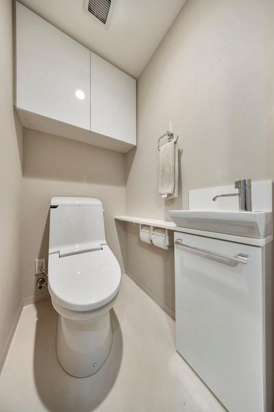 ※販売対象に家具・調度品は含まれません。温水洗浄便座付きのトイレ。来客時にも重宝する手洗いカウンターが設けられています。(2025年10月撮影)