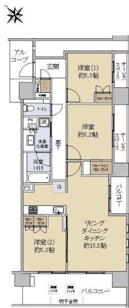 | 販売戸数/総戸数 | 1戸/500戸 | 主要採光面 | 南西 | ||