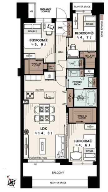 | 販売戸数/総戸数 | 1戸/270戸 | 主要採光面 | 南西 | ||