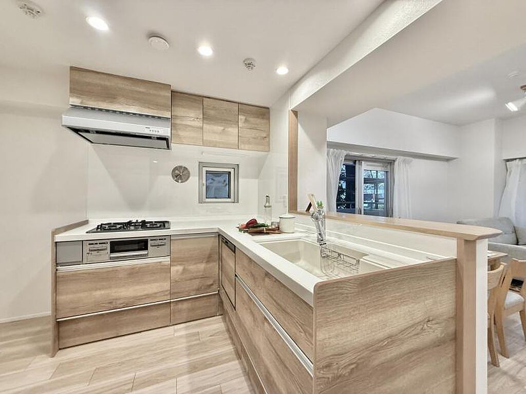 | キッチン | 浄水器・活水器、コンロ三口以上、コンロ二口以上、ガスコンロ設置済、ガスコンロ、コンロ三口、システムキッチン、給湯、食器洗い乾燥機 | ||||