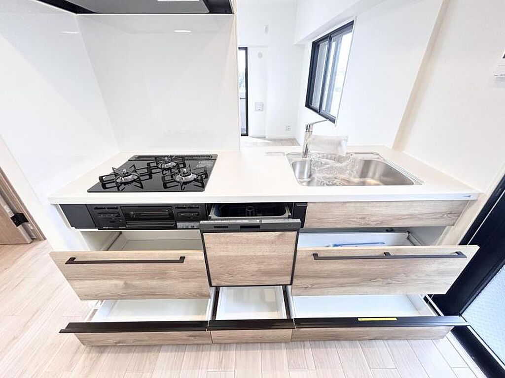 | キッチン | ガスコンロ、カウンターキッチン、コンロ三口、コンロ三口以上、システムキッチン、コンロ二口以上、ガスコンロ設置済、給湯、食器洗い乾燥機 | ||||