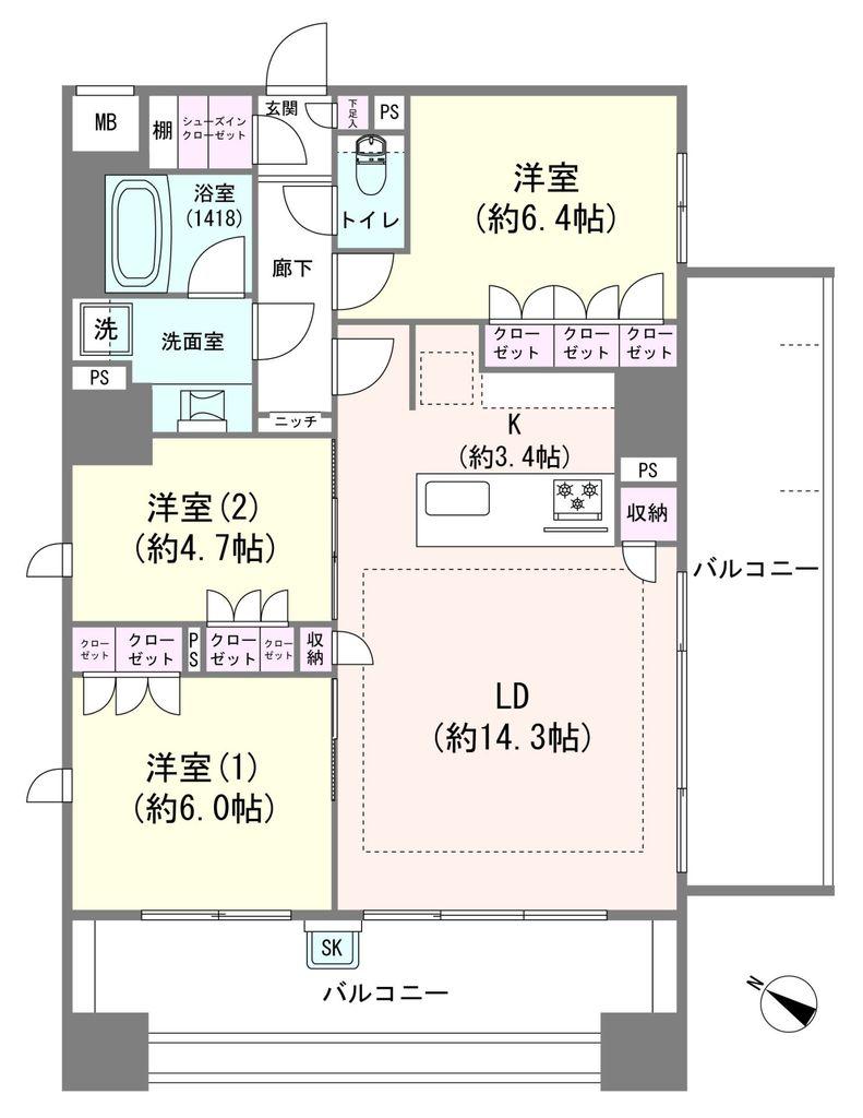 | 販売戸数/総戸数 | 1戸/38戸 | 主要採光面 | 南西 | ||