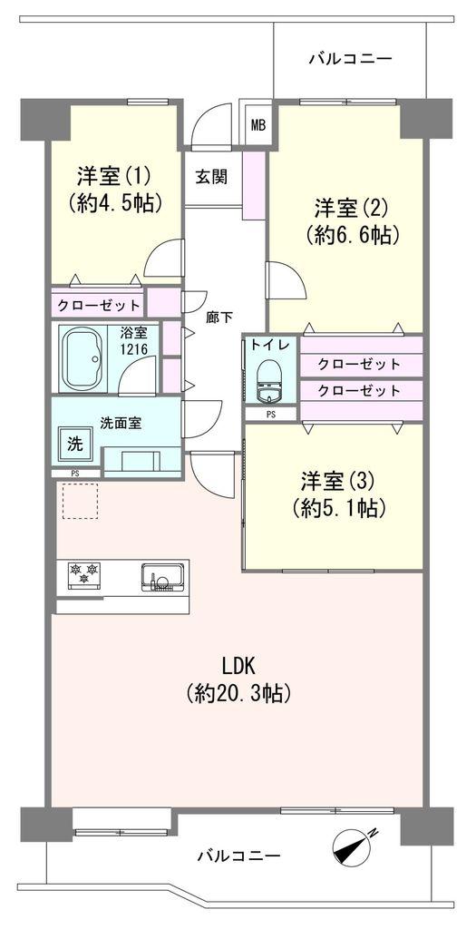 | 販売戸数/総戸数 | 1戸/34戸 | 主要採光面 | 南東 | ||
