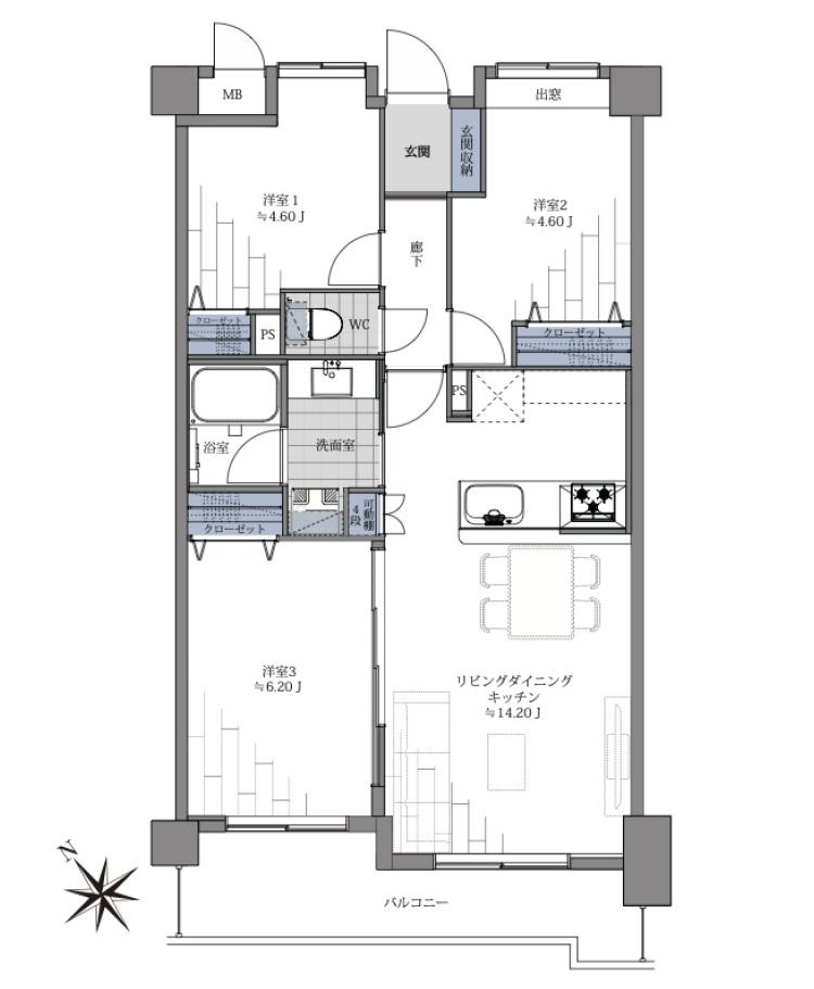 | 販売戸数/総戸数 | 1戸/78戸 | 主要採光面 | 南西 | ||