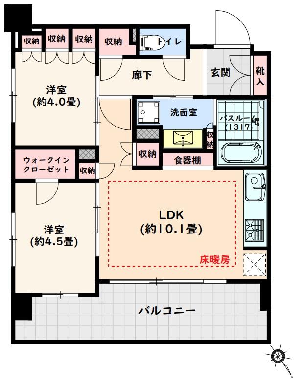 販売戸数/総戸数 | 1戸/36戸 | 主要採光面 | 北東 | ||