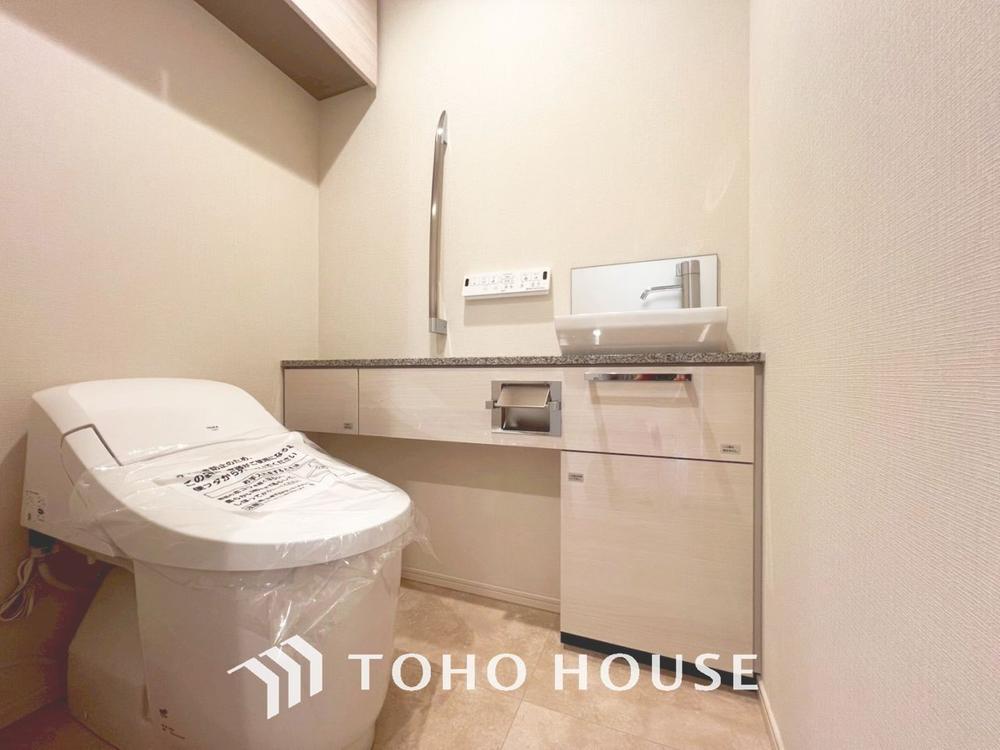「温水洗浄便座付きトイレ」トイレは快適な温水洗浄便座付です。清潔感のあるホワイトで統一しました。いつも清潔な空間であって頂けるよう配慮された造りです。