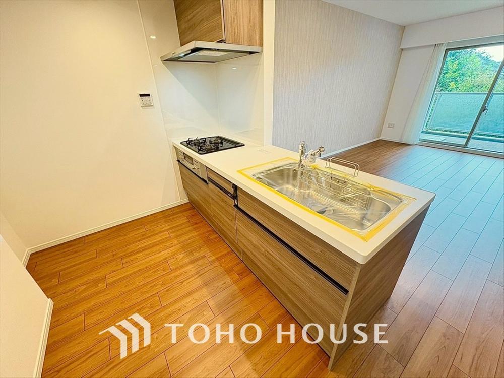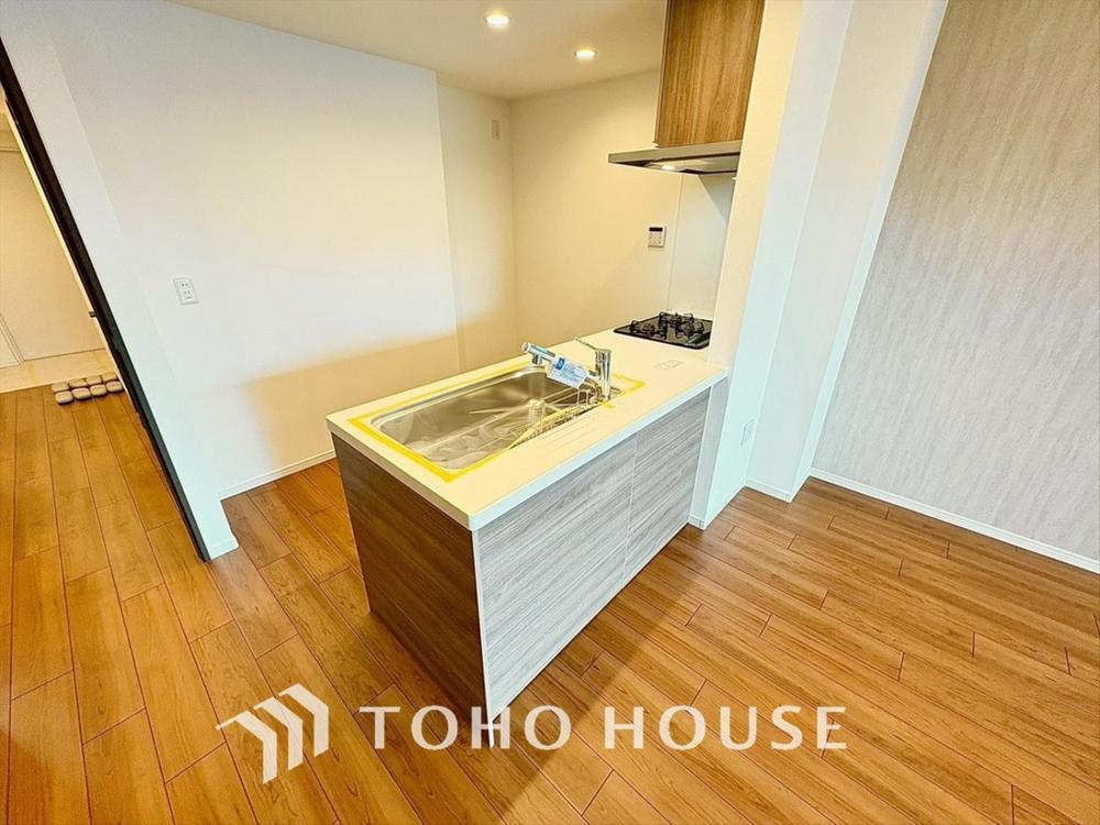 【会話も弾みます】キッチンは収納数もさる事ながら、リビングで寛ぐ家族や小さなお子様を見守りながら料理が出来る「対面式の温もり設計」。キッチンから立ち込める香りが今日の料理を期待させます。