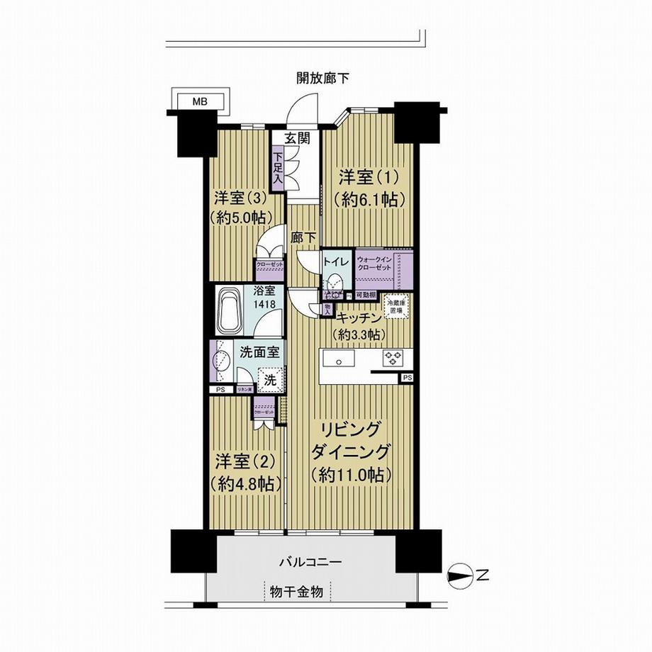 | 販売戸数/総戸数 | 1戸/267戸 | 主要採光面 | 東 | ||