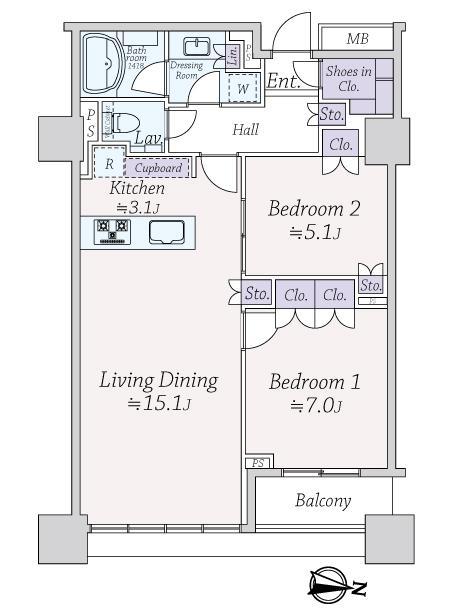 68.99平米の2LDK地震の揺れを軽減する免震構造タワーマンション